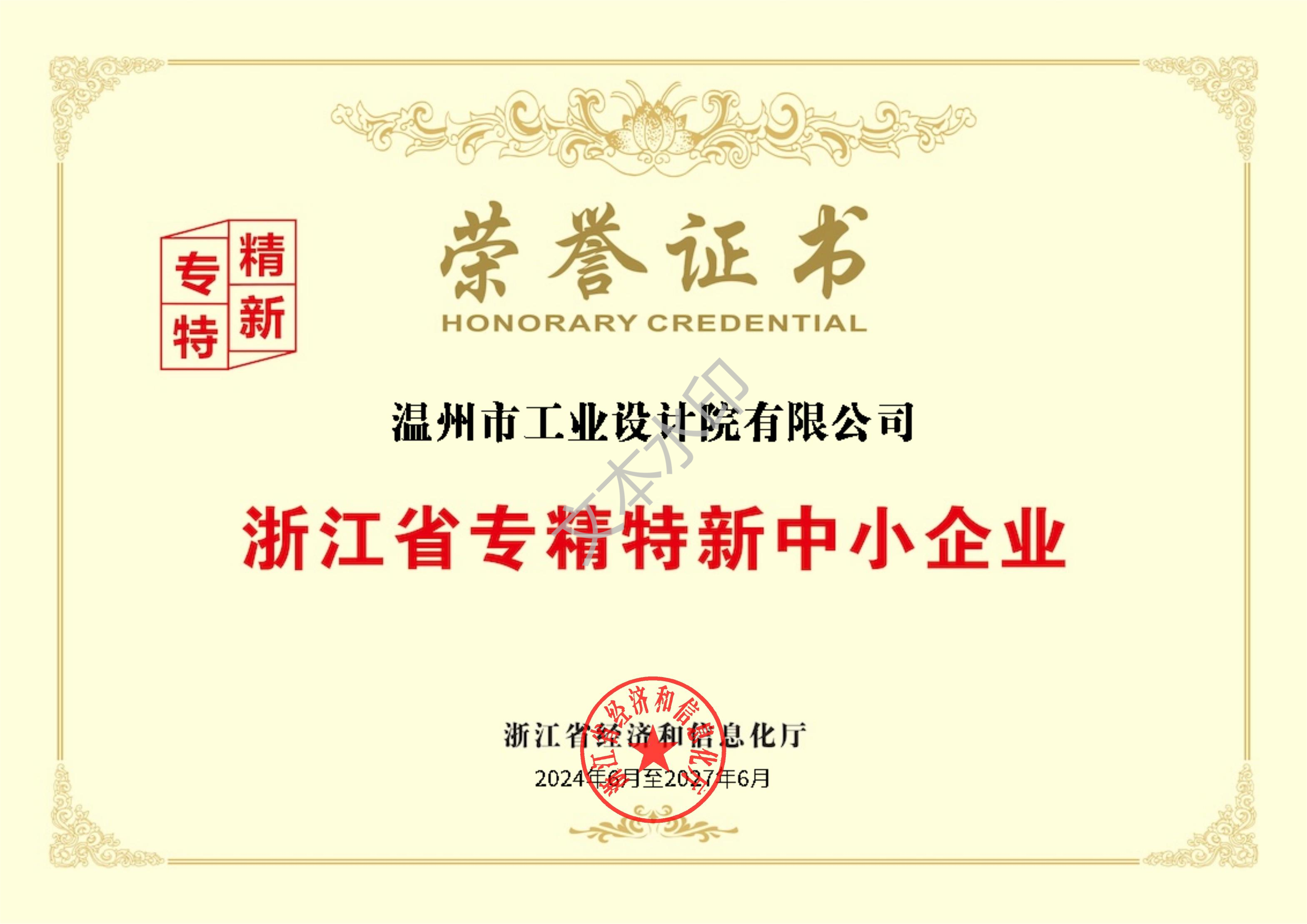 浙江省專精特新中小企業(yè)榮譽(yù)證書